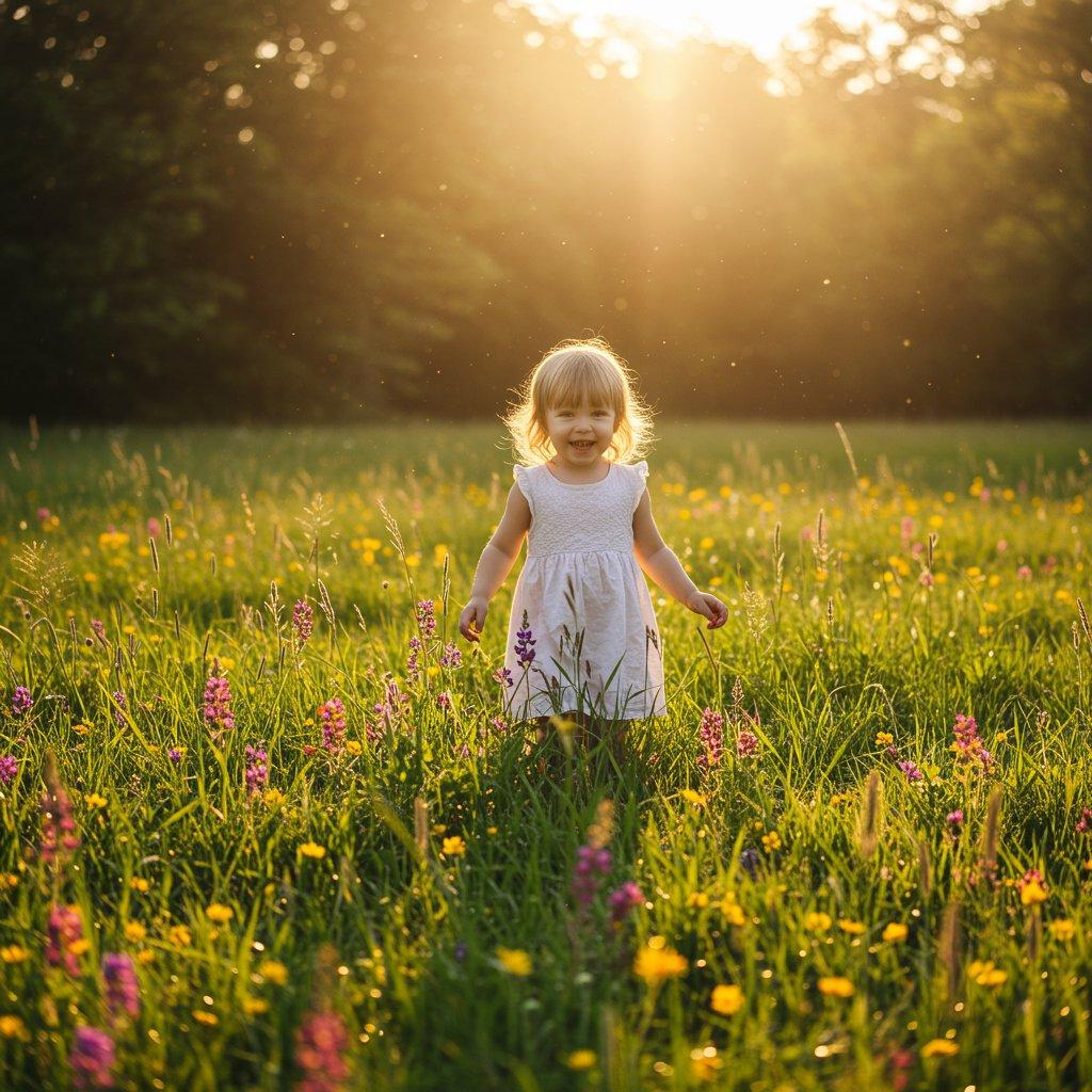 Dziecko na tle łąki